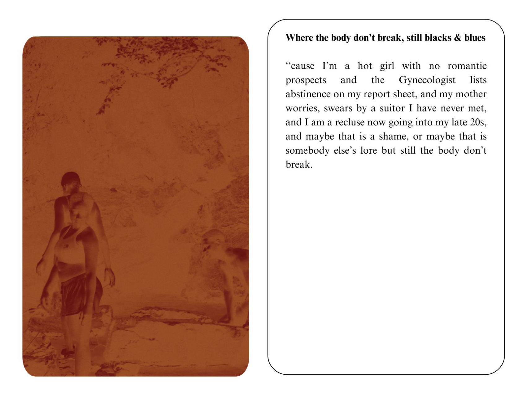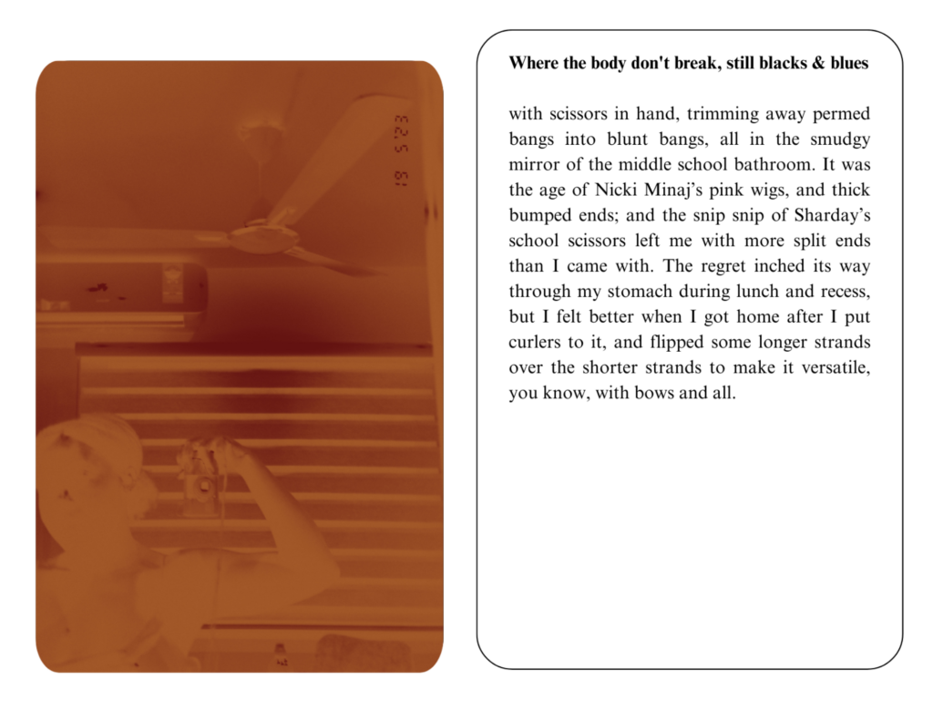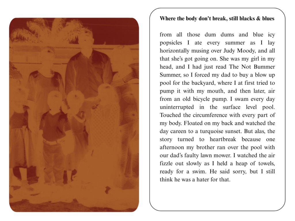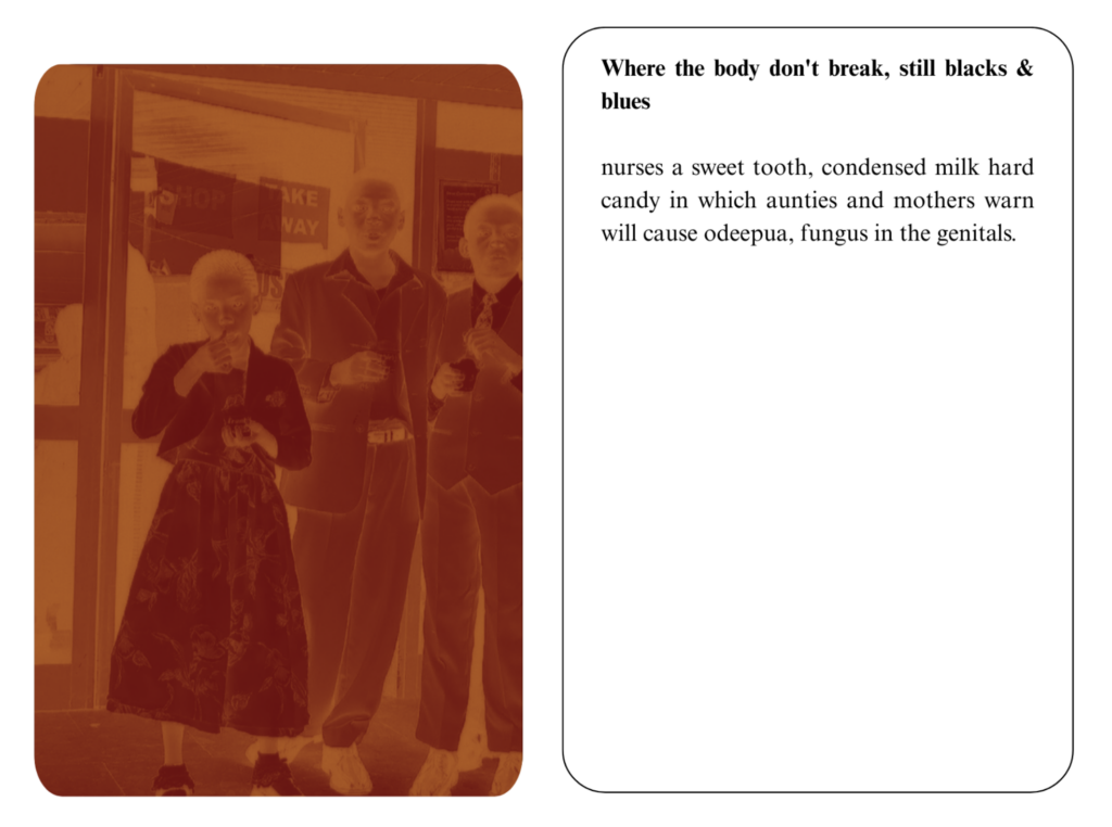 Editor’s note: Claudia Owusu’s piece for On Repetition was designed in the format of a flipbook, which you can experience below by clicking next and previous, or a specific page. For the full effect, you can view it in browser here.